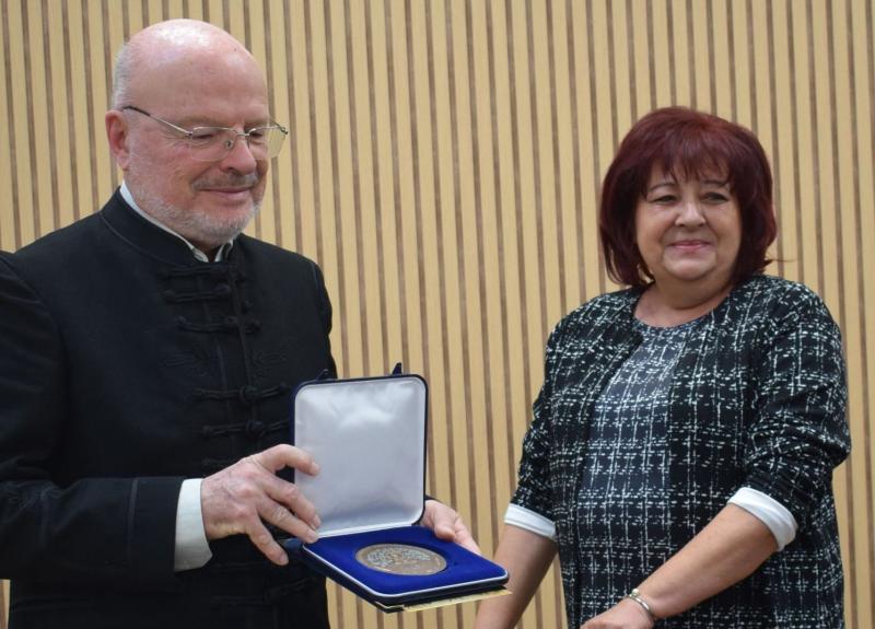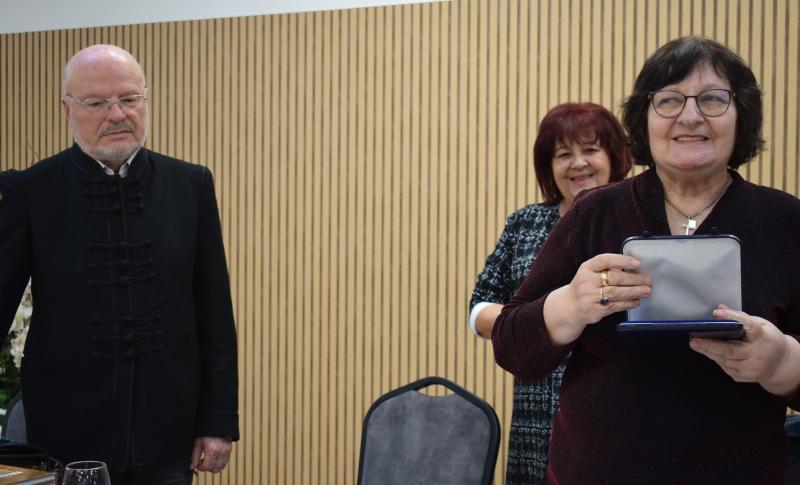 Dr.Nagy Attila átadja Emődy Emesének az ezüst kitüntetést |