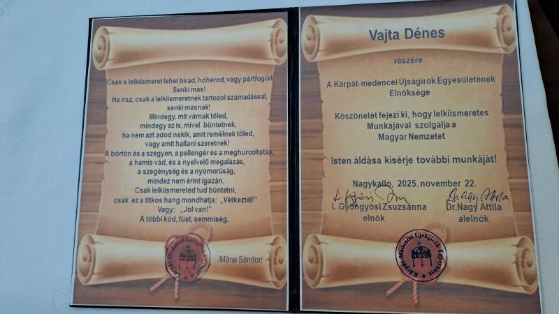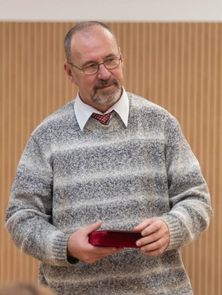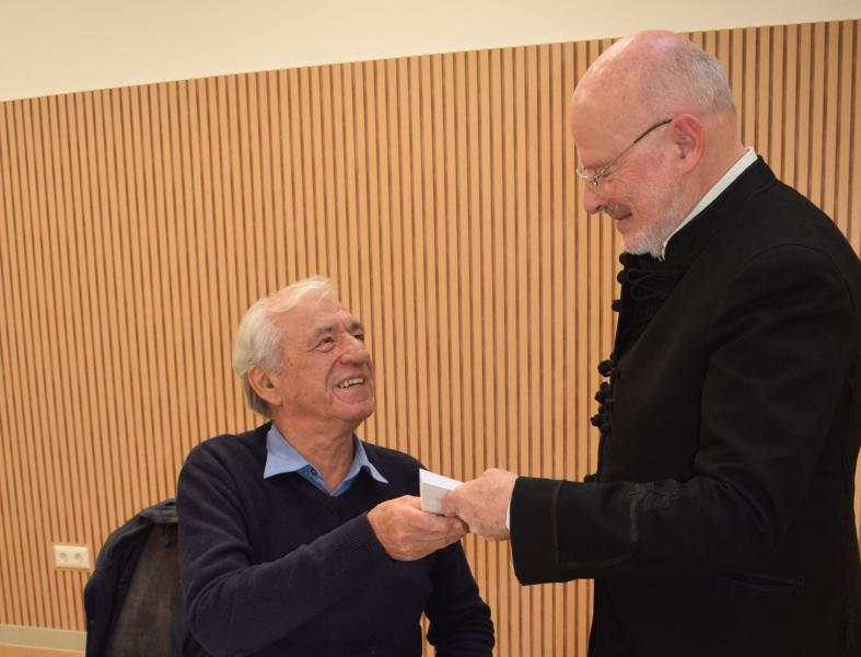 Vajta Dénes is nagyin meglepődött a kitüntetés átadásánál. A csel az előadás tartása volt, hogy titokban legyen tartva... |