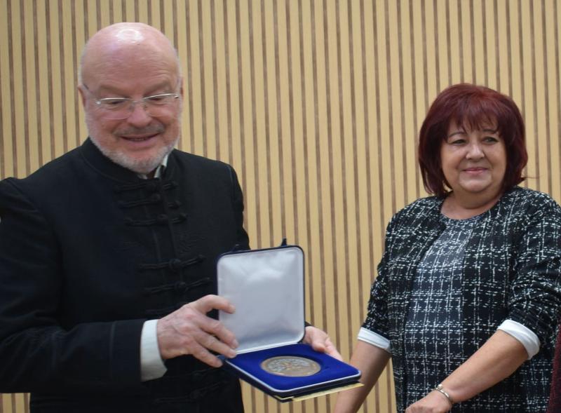 Dr.Nagy Attila átadja Emődy Emesének az ezüst kitüntetést |
